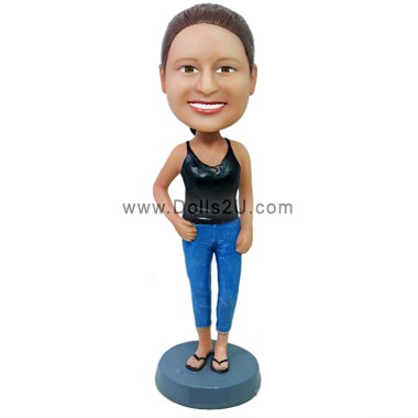 Home Custom Bobbleheads Female Casual Lady Wearing Tank Top And Flip Flops